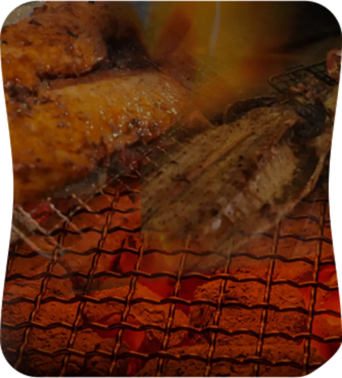 炭火がぱちぱちと音を立て、焼ける香ばしい香りがふわりと漂う。